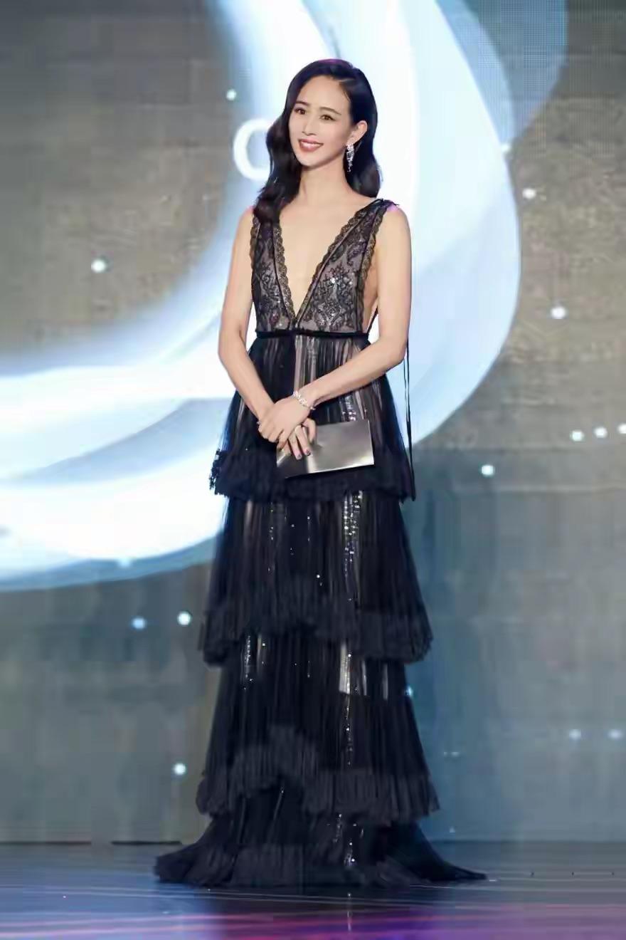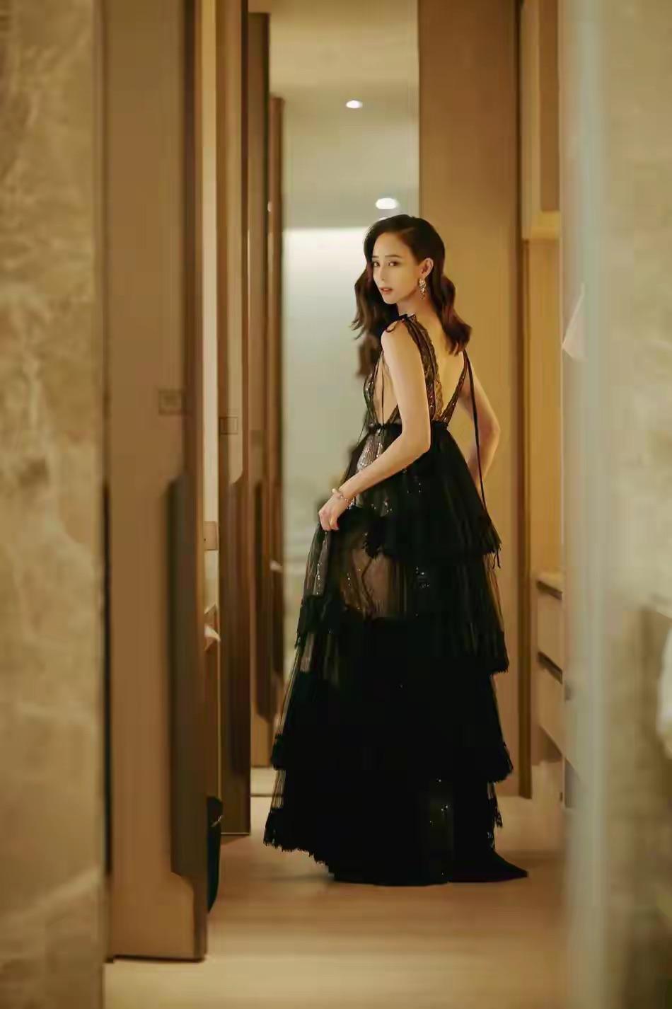 黑色的蛋糕裙,穿在張鈞甯身上格外的高級惹眼。大V形的領口帶一點小性感,讓張鈞甯的穿搭又可愛又迷人。