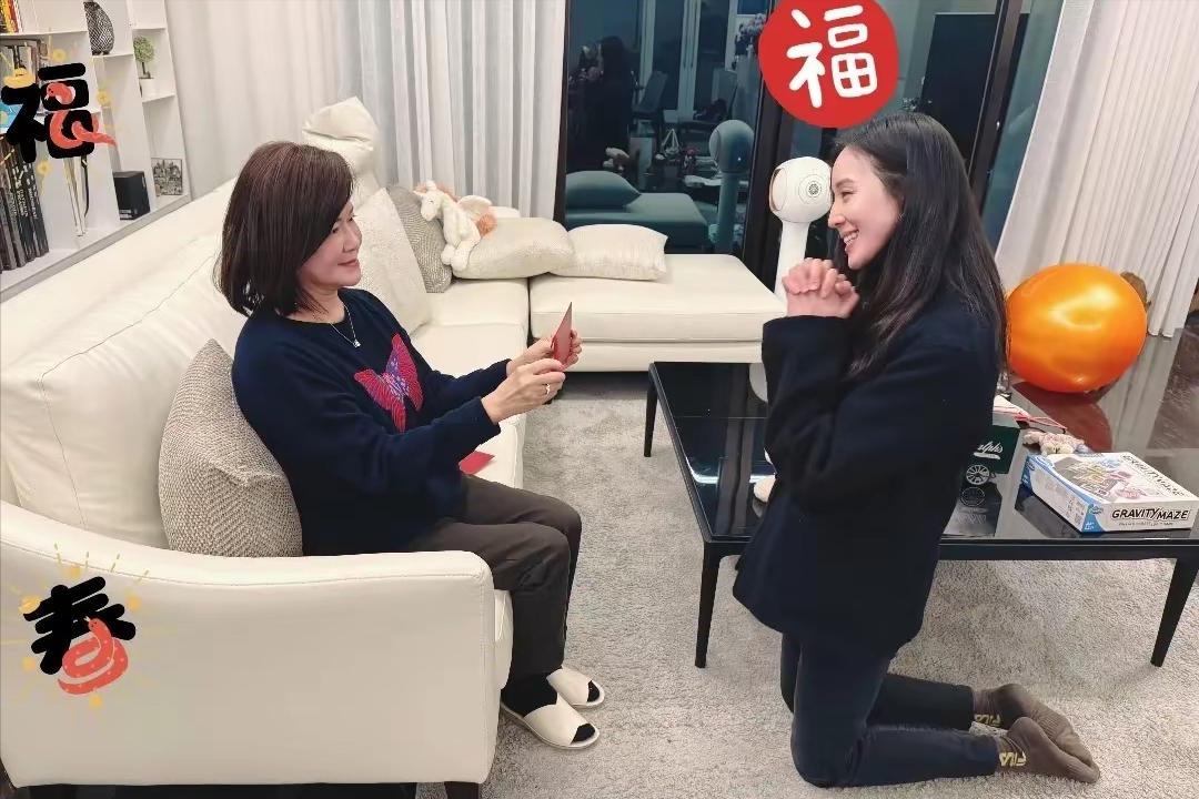 張鈞甯42歲了,還是像個小女孩一樣的俏皮可愛。她跪在地上向媽媽拜年、討要紅包,這一瞬間彷彿回到了小時候。