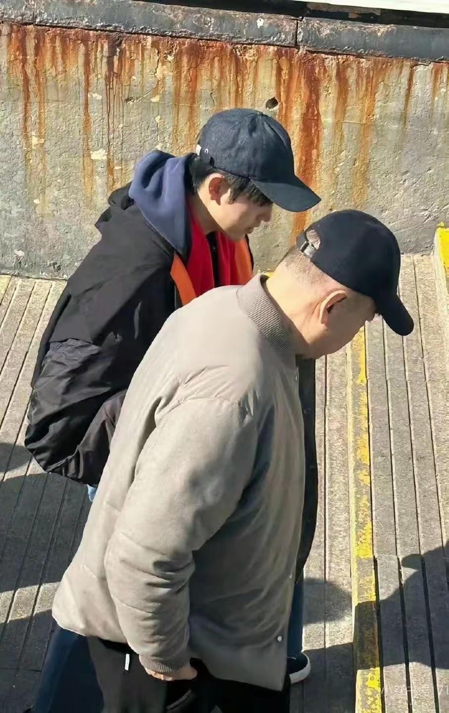 七十多歲的陳凱歌,後背有點佝僂着,很明顯有了年齡感。他穿着很低調、帶了一頂棒球棒,二兒子陳飛宇小心翼翼的攙扶着父親,非常貼心。