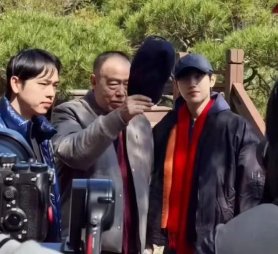 走了一會,他們像是遇到了熟人,在親切的交談着。陳凱歌和陳飛宇都戴了帽子、陳凱歌摘掉帽子、面部更加滄桑。真是歲月不饒人,跟年輕的兒子一比,陳凱歌真是顯得老了。