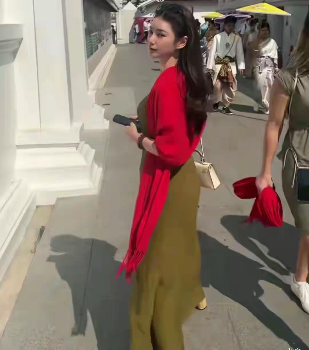 不知道泰國祈福求子是不是真的靈驗,不過單從馬筱梅的氣質長相來看,她一點都不比大S差。穿修身的連衣裙,配上紅色披肩好喜慶。