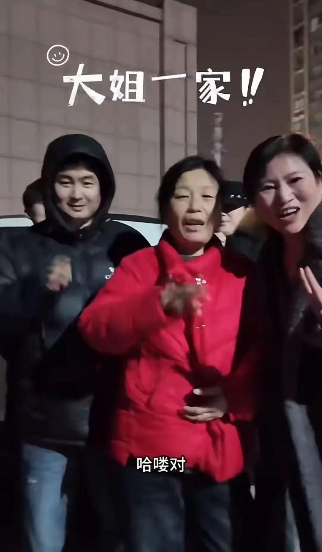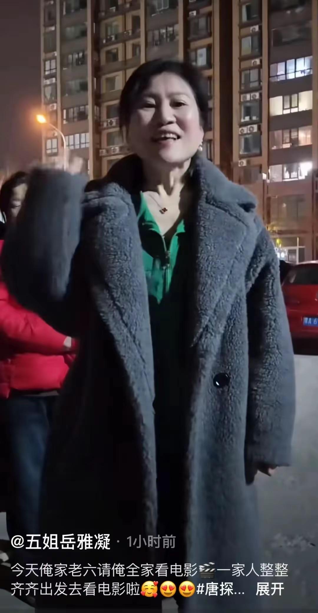 首先是岳雲鵬的大姐一家,大姐穿了紅色棉襖、看着好喜慶。岳雲鵬的大姐已經60多歲了,臉上的皺紋也很明顯了,但是她神采奕奕的、打心裏爲岳雲鵬的事業成功感到開心。