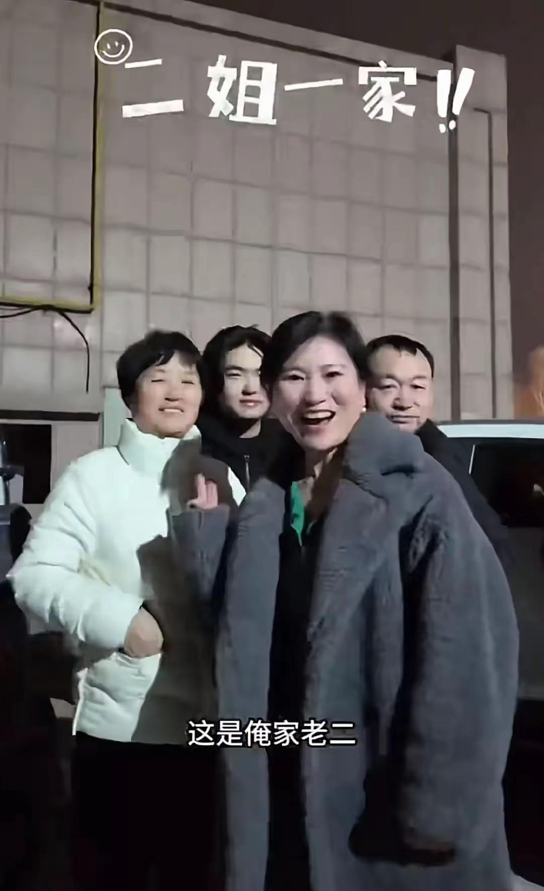 二姐一家也來了,二姐剪了利落的短髮、穿着白色豎領的羽絨服,打扮的相對很洋氣。二姐一家三口個子都挺高、笑起來眯着眼睛和岳雲鵬還挺像的。