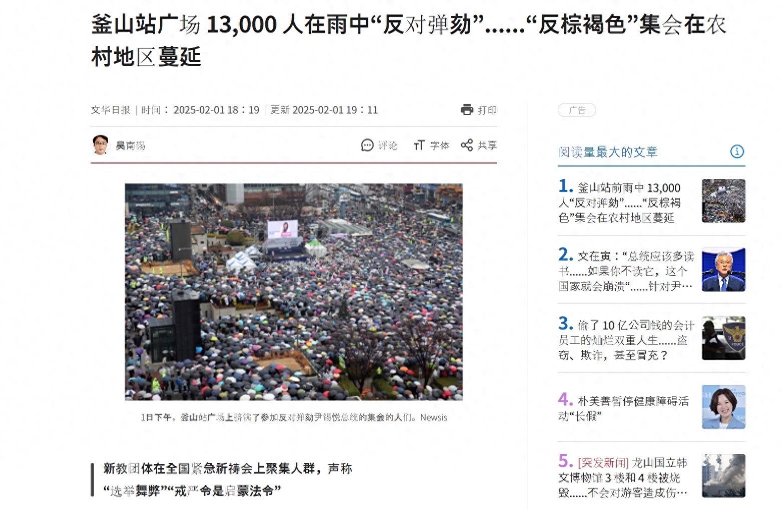 1月31日在韓國釜山站廣場,大約有13000人在雨中“反對彈劾”,看起來陣容浩大、他們都申請釋放總統。