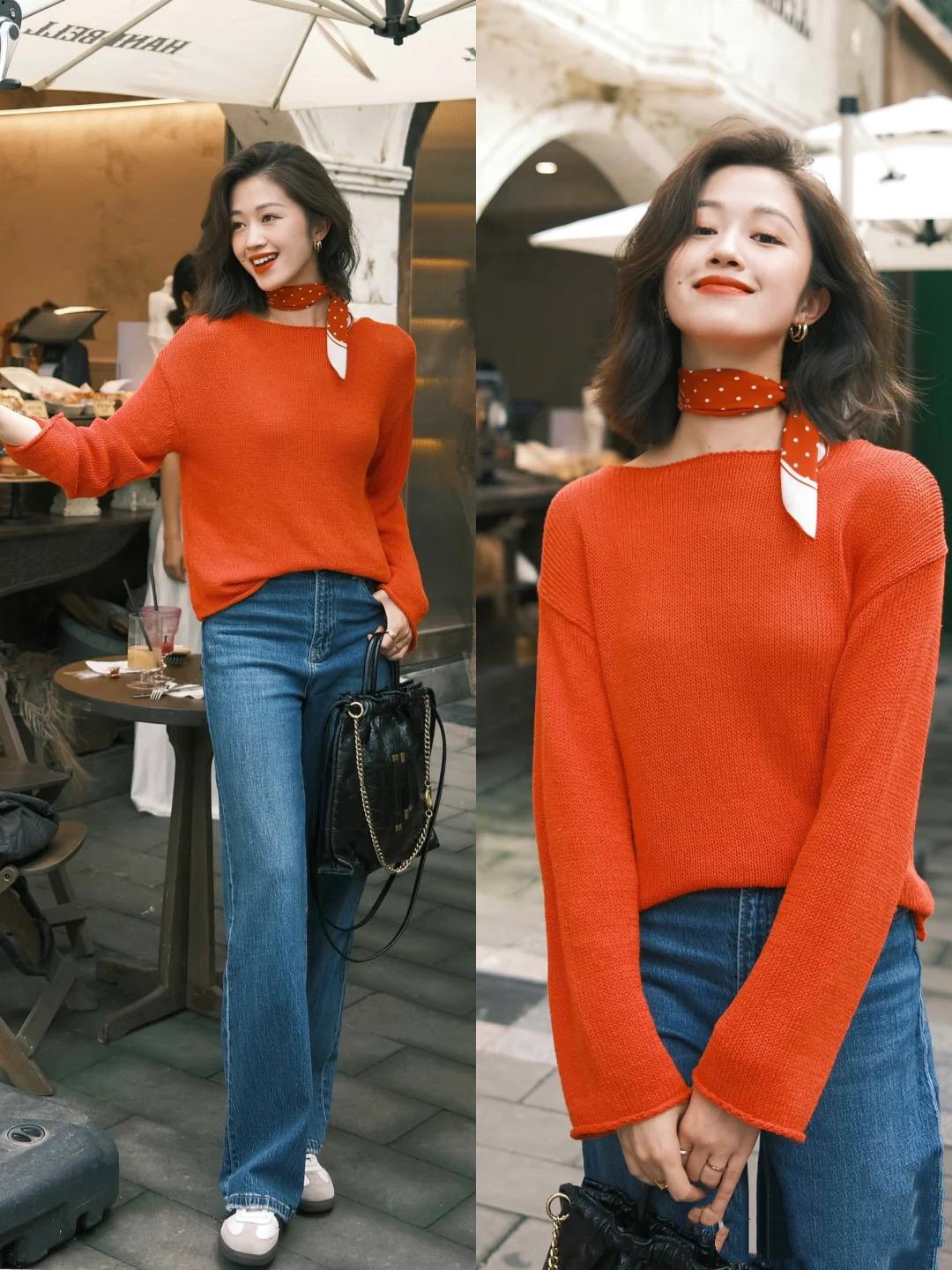 一種簡單又舒適的美,真的是太讓人心動了。面料輕薄的針織衫、極簡風的款式特別耐看。橘色針織衫,也帶着港風的浪漫。