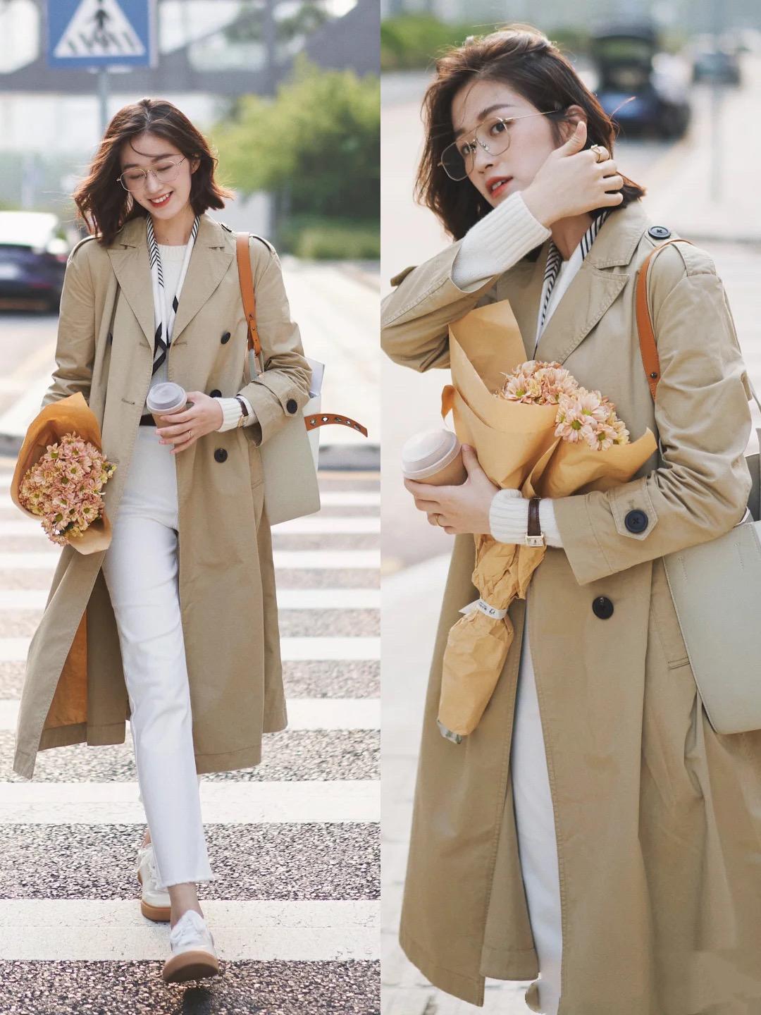 年後復工,適當輕薄的穿搭真的很應景。如果天氣不是特別冷的話,就穿一件卡其色的風衣外套吧。