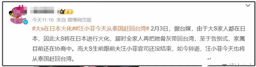 年初四、大S遺體在日本火化,臨終前家人陪在身邊,汪小菲哭紅眼