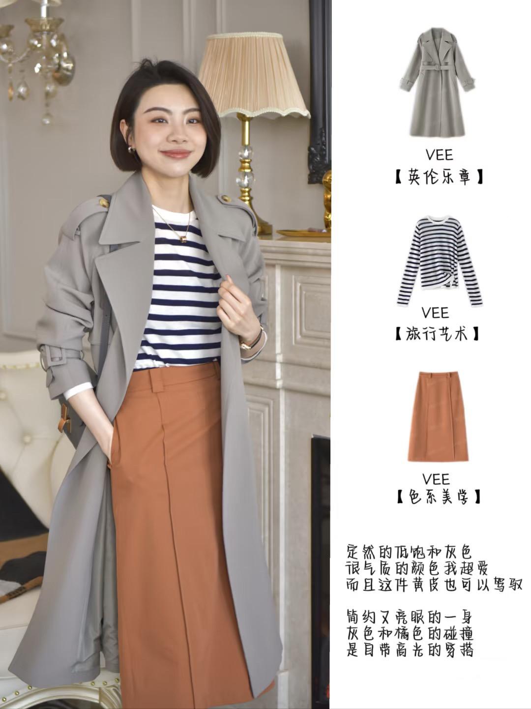 這種黑白條紋打底衫,我們可以配高腰的A字形半身裙來穿,簡潔高級、又特別的顯氣質。這種灰色長款風衣,配高跟鞋更摩登。