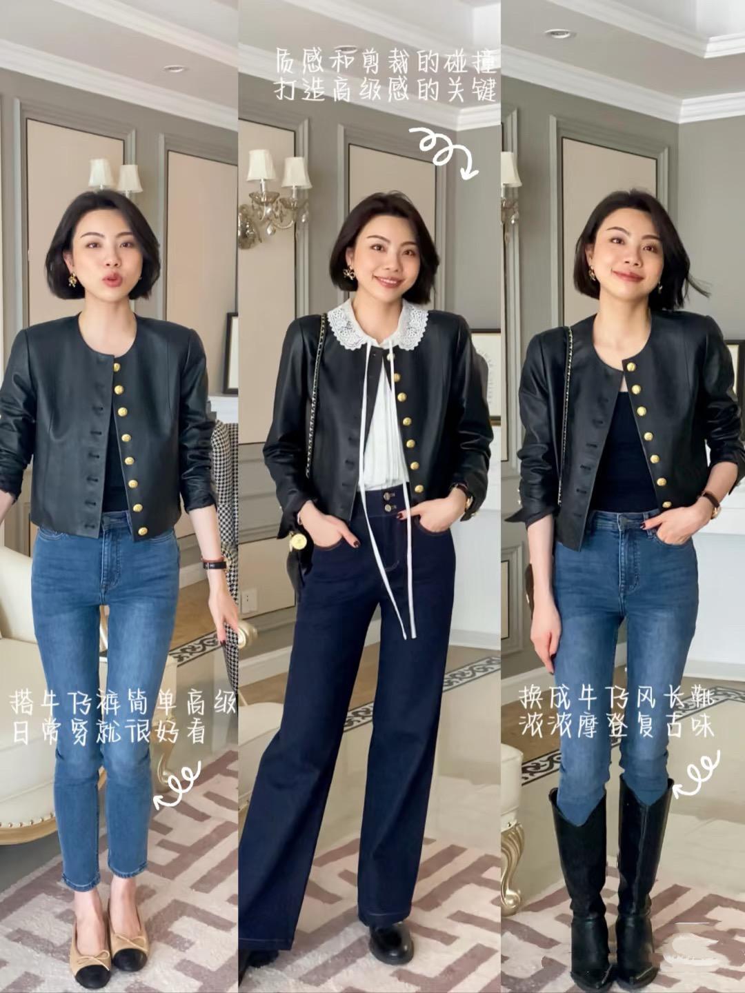 時髦帥氣、又特別拉風的皮衣外套,其實是一種比較挑人的款式。尤其是這種小短款、穿不好就會暴露身形。