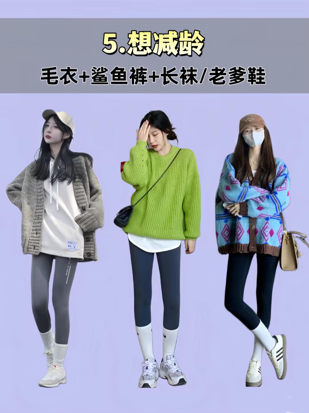 毛衣+鯊魚褲+老爹鞋