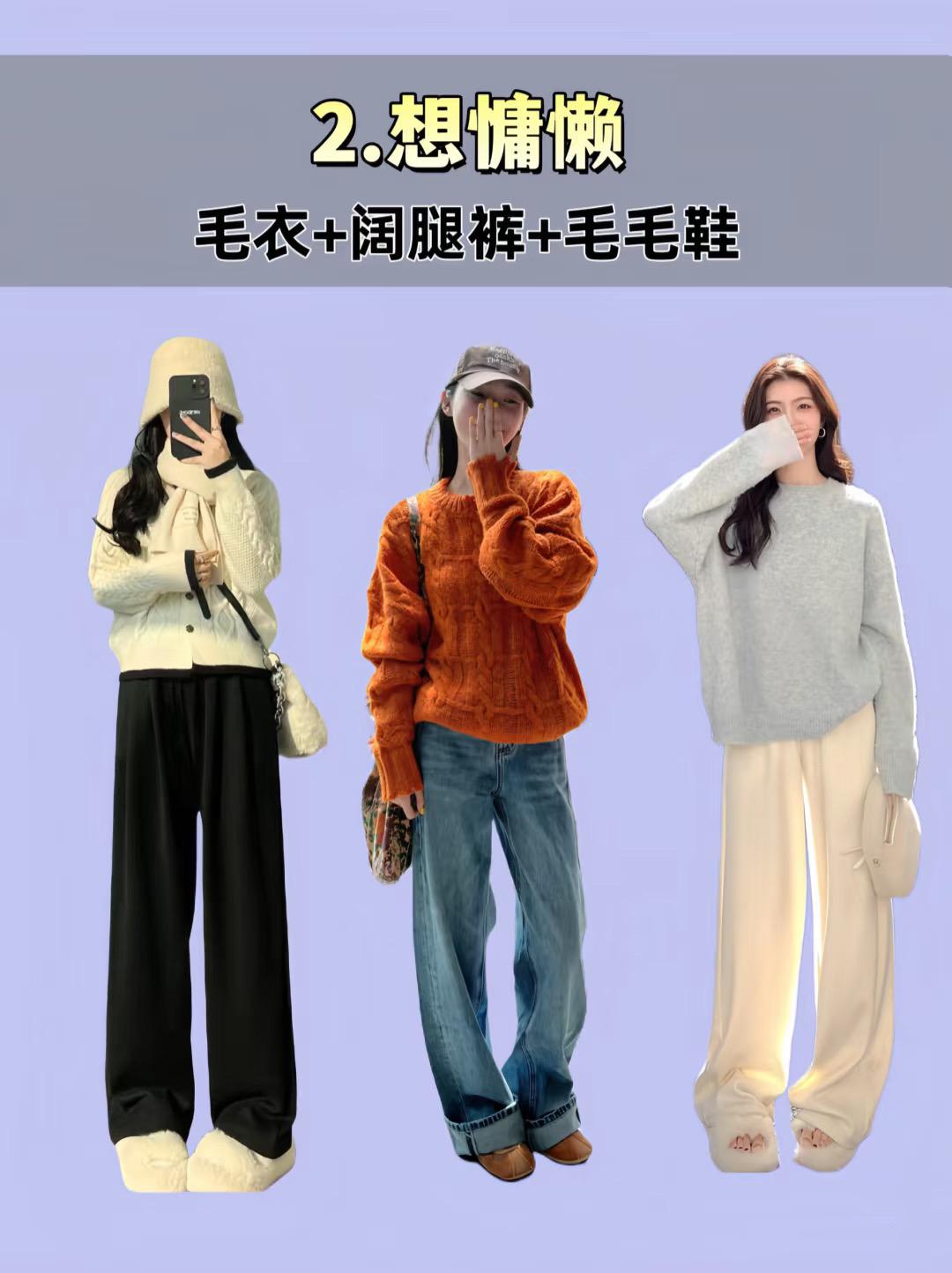 毛衣+闊腿褲+毛毛鞋,慵懶減齡很耐看