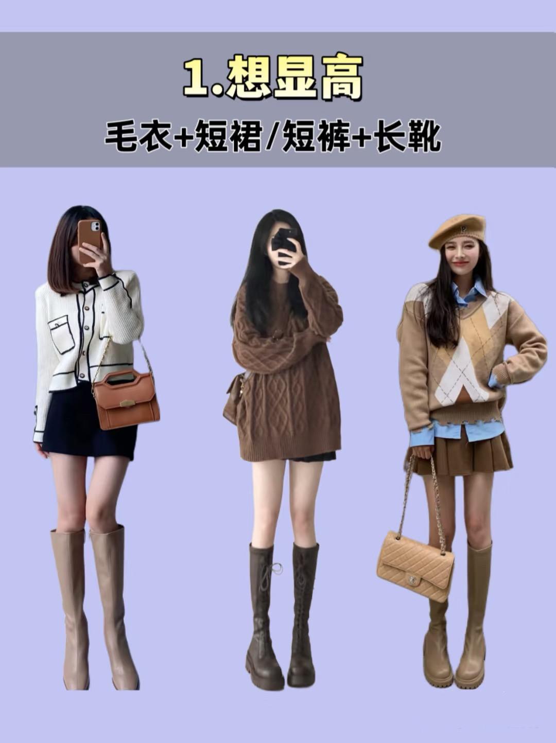 毛衣+短裙+長靴,修飾腿型還顯高