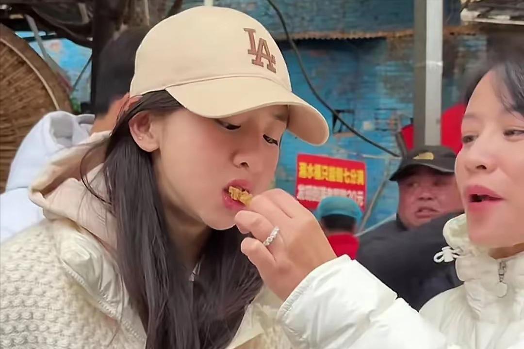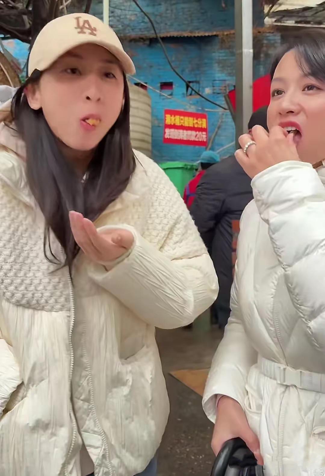 在街上溜達的時候,葉一茜拿小酥肉餵給森碟喫。可能是當時的天氣太冷了,森碟一隻手插在羽絨服的口袋裏,享受着媽媽送來的美食。