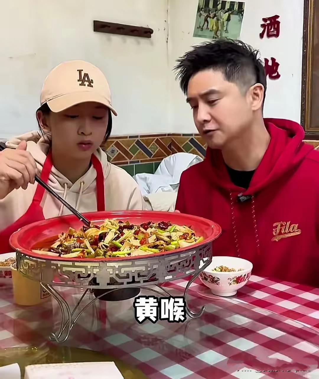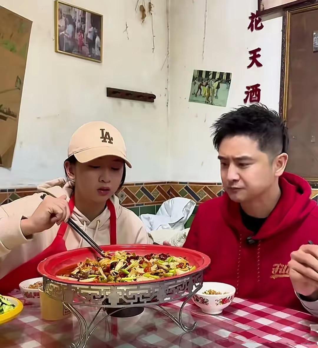 不過當田亮看到菜品的時候,表情凝重、他緊緊皺着眉頭。大概是太久沒喫這麼辣了,有點不習慣。