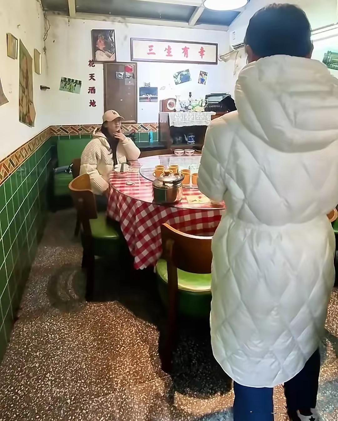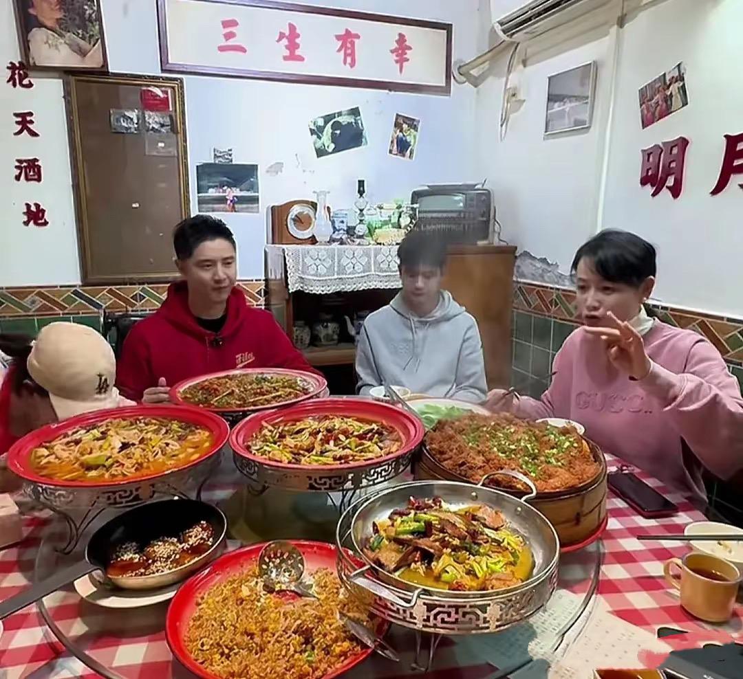 甚至牆面都有了斑駁的痕跡,牆上還掛着一些老照片。他們品嚐到了久違的重慶美食,田亮的老家就是重慶,這樣的美味也是他朝思暮想的吧。
