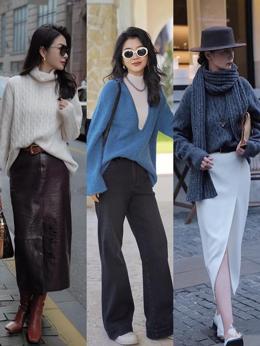 寬鬆的毛衣,純色系的款式、更低調也比較顯氣質。這種寬鬆毛衣,不管是配裙或者配褲,都有一種高級時尚的美。
