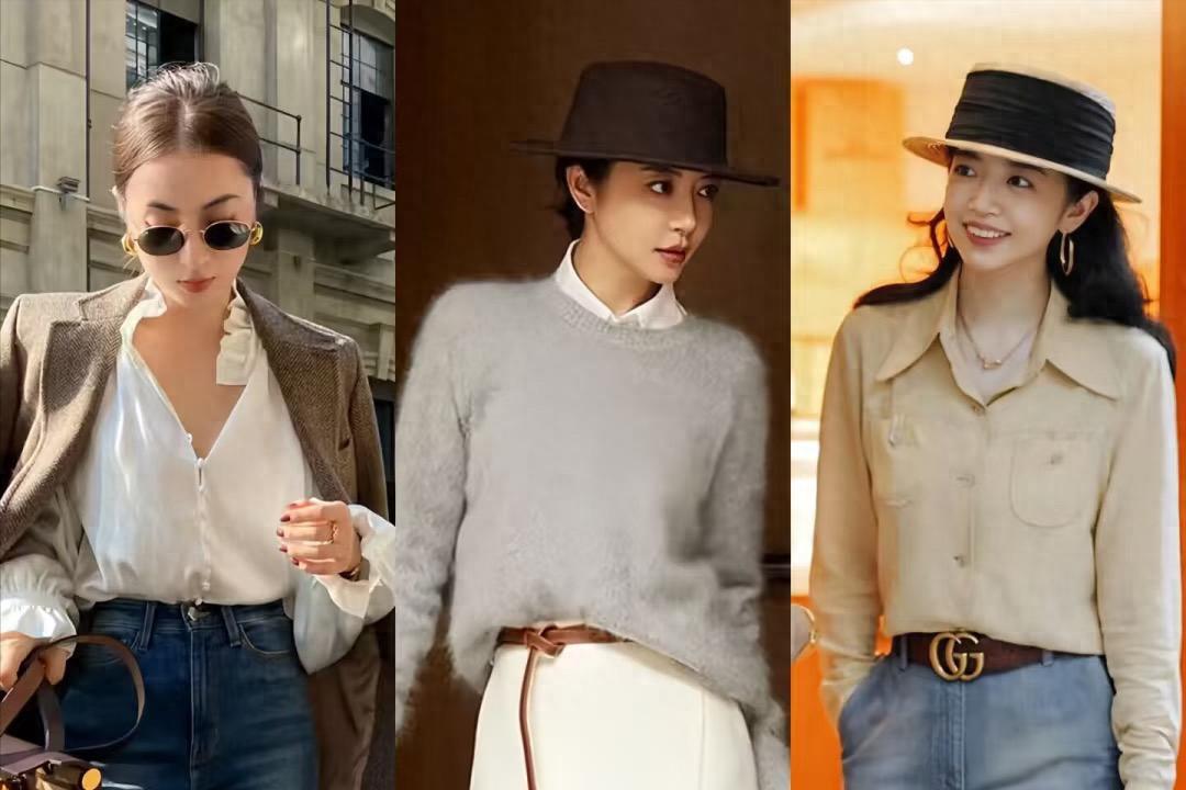 白襯衫/白色T恤作爲內搭,更時髦鮮明有一種特別高級的美。這種寬鬆的針織衫疊搭白色襯衫,繫上纖細的皮帶,更多了時髦與精緻感。
