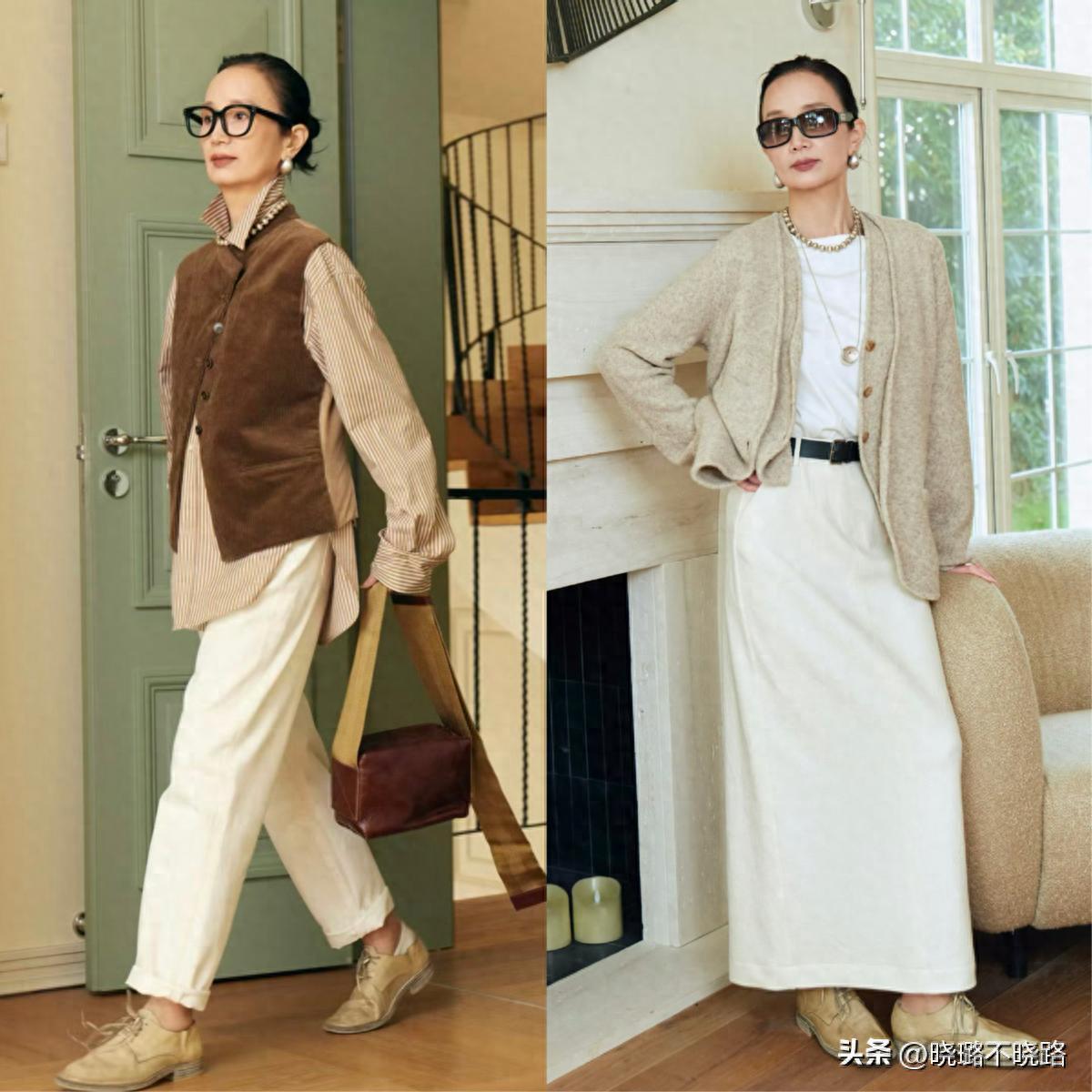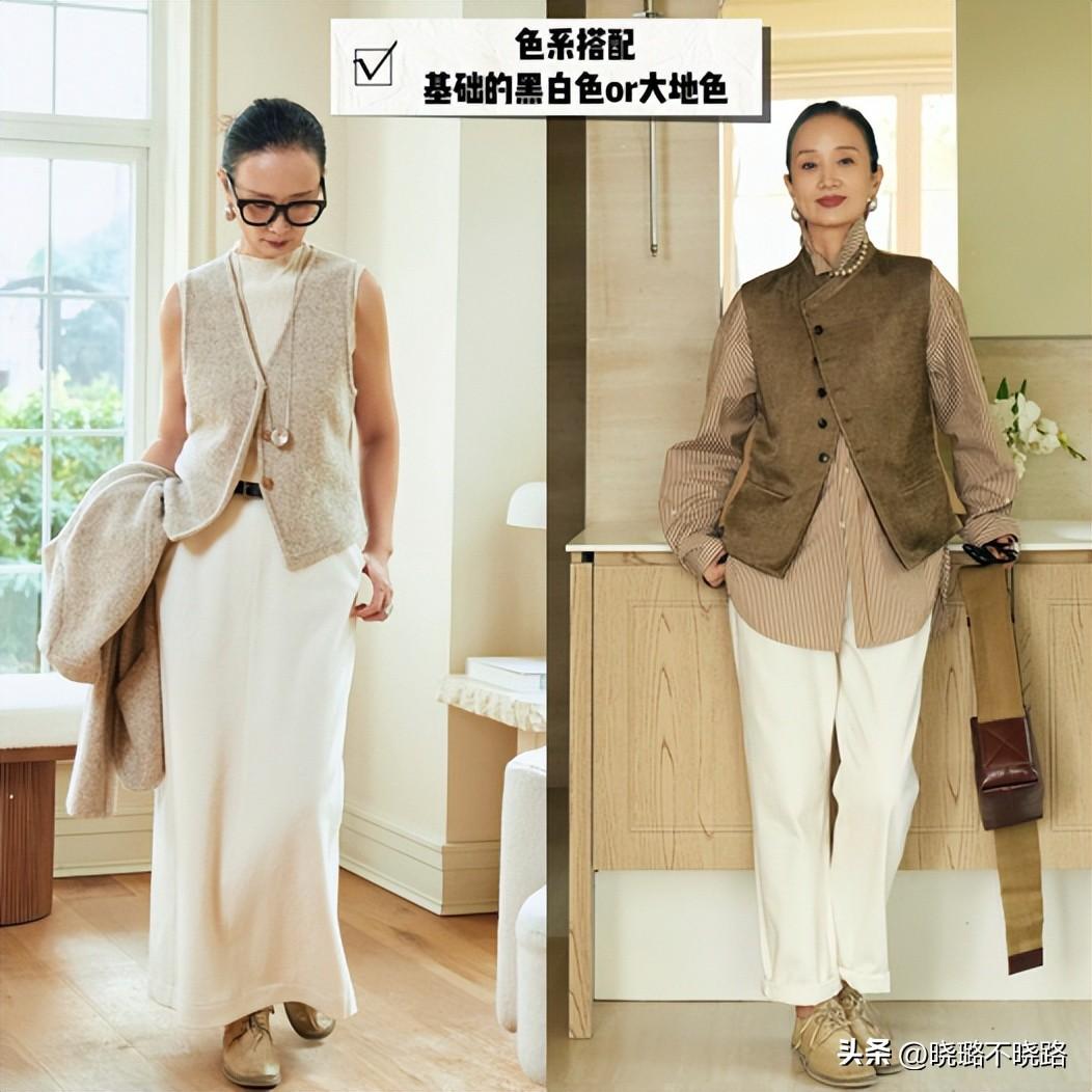 對於中年以及中老年階段的女性而言,在色系的優選搭配當中,還是更推薦各位可以將黑白灰這樣的基礎不挑人的色系以及沉穩又時尚,顯氣質的大地色來進行優選搭配。尤其是大地色系的搭配,像三木媽媽在日常當中就非常的喜歡進行運用。