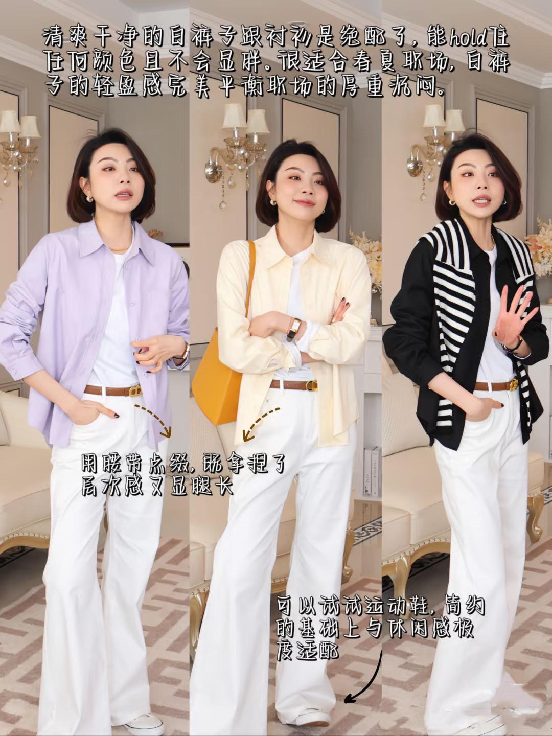 簡單大方的白褲子,在美好的春天裏更具視覺衝擊力。那一抹清新幹淨的潔白,讓我們的穿搭更惹眼、更大方、也更時尚。