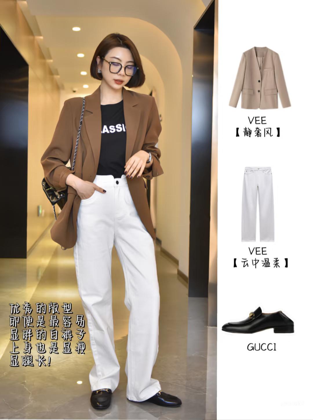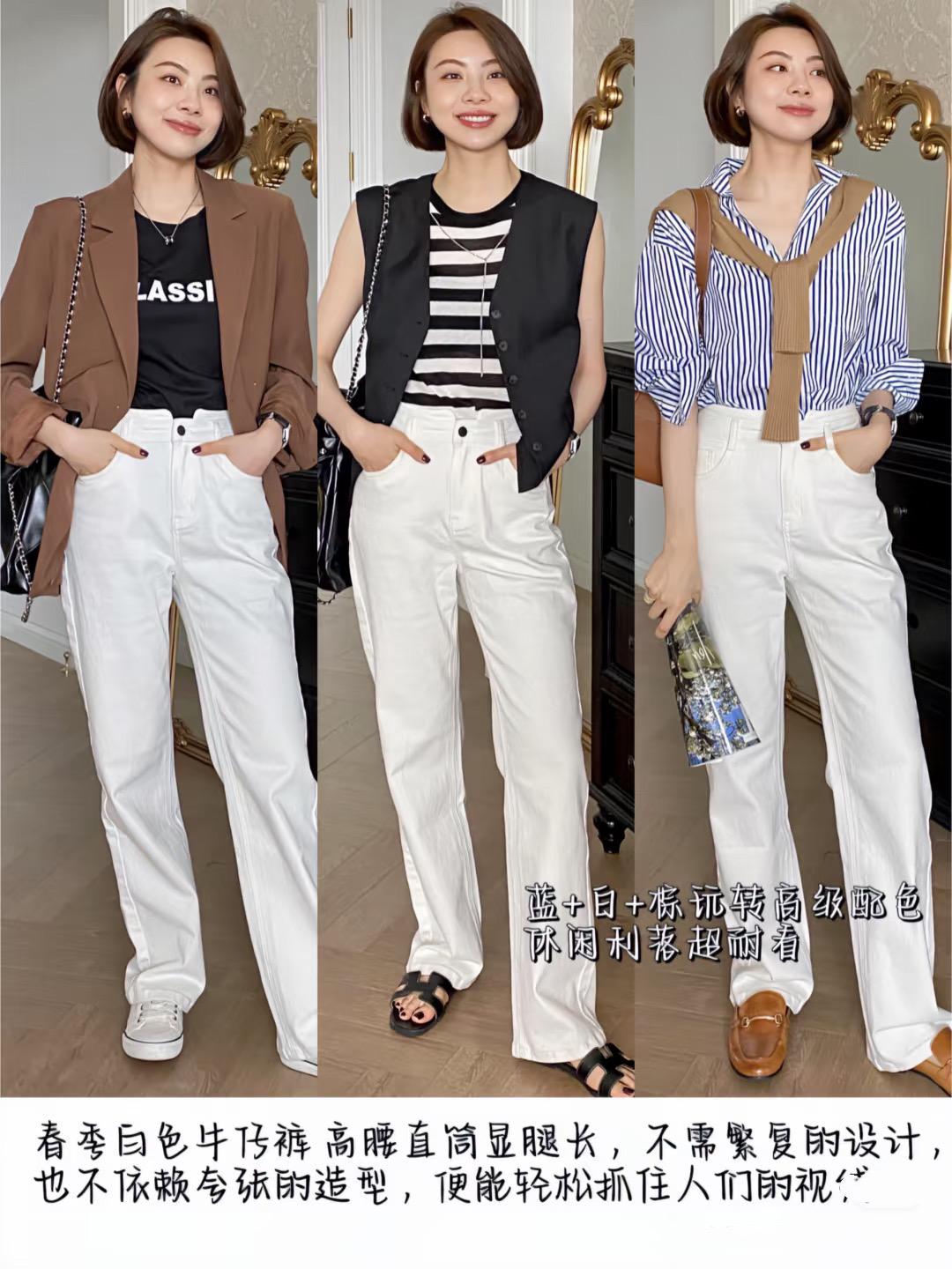 我們可以選擇面料相對挺括的白色牛仔褲,帶着乾淨與美好、讓我們的穿搭更爲實施。白色褲子,可以配淺色打底衫、糖果色襯衫,棕色皮帶,時髦颯美。