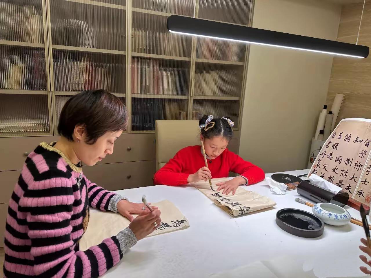 一家人平淡的快樂,浸潤着墨香。這樣的生活、簡直就是超凡脫俗的。在練習書法的時候,也可以平心靜氣、讓浮躁的心沉靜下來。