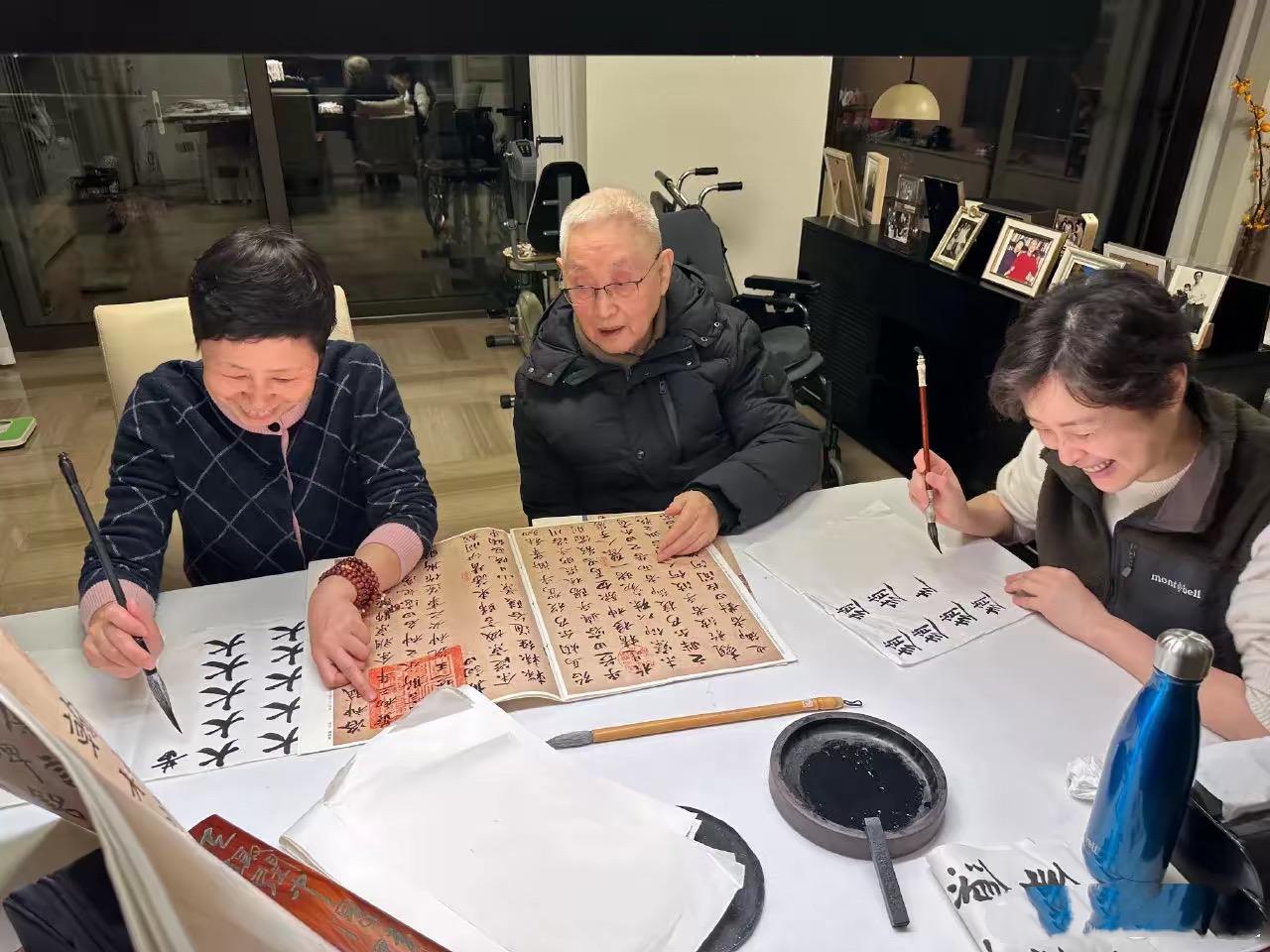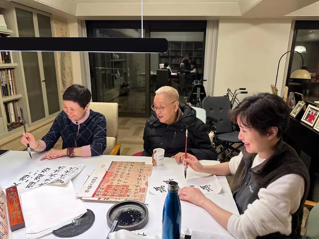 過年的時候,一家人聚在一起練書法,有說有笑的、其樂無窮。父親80多歲了,頭髮都白了,吳越也52歲了,真是歲月不饒人啊。
