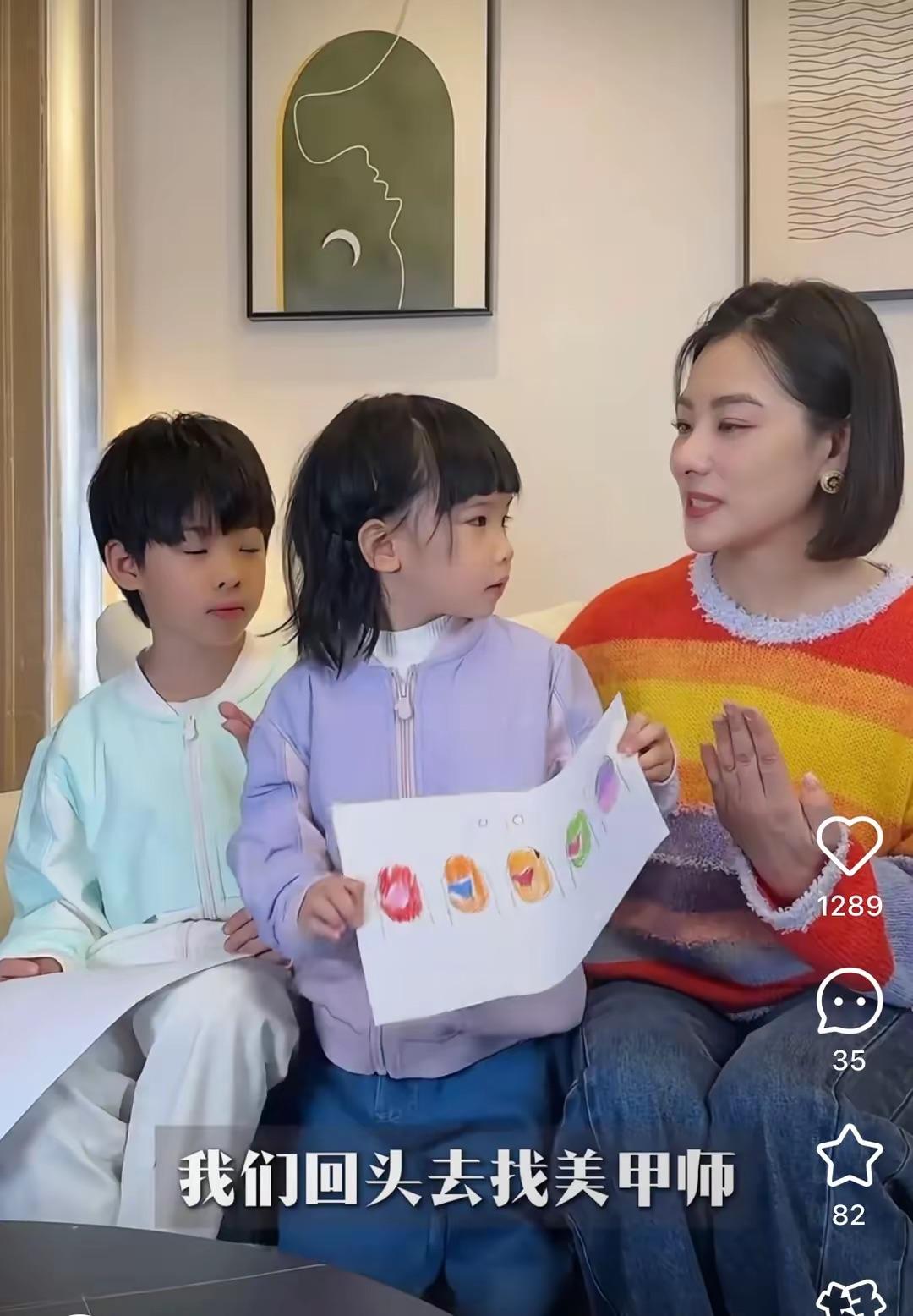 劉璇在育兒上頗有一套,她特別讚賞孩子們的想法。表現出好期待的神情,正因爲劉璇的期待,兩個孩子也是躍躍欲試,準備給媽媽設計好看的美甲圖案。