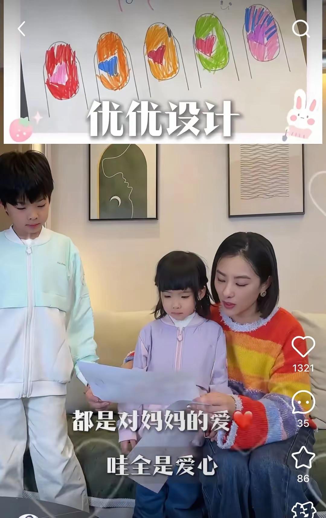 劉璇原本是想要孩子們幫她選一個好看的美甲圖畫,母子三人就坐在沙發上選款。只不過兩個孩子對現有的圖案並不是很滿意、還特別有自己的想法。