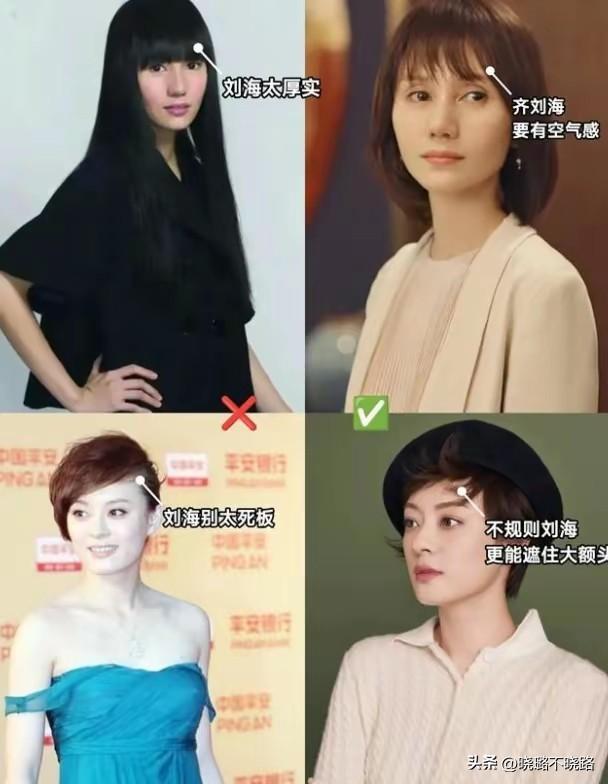 過於厚重的髮型會讓人感到沉悶和壓抑,很難展現出女性特有的柔美與清新,所以大家可以利用輕盈的劉海進行襯托,比如這種鮎魚劉海或者八字劉海,不僅能夠遮擋髮際線的問題,還可以更好地修飾臉型,給人一種成熟穩重的氣質。