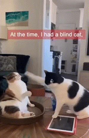 就這樣,好心的Blondie成爲了三隻殘疾貓咪的主人,每天都會因爲三隻貓咪吵架而當和事佬。