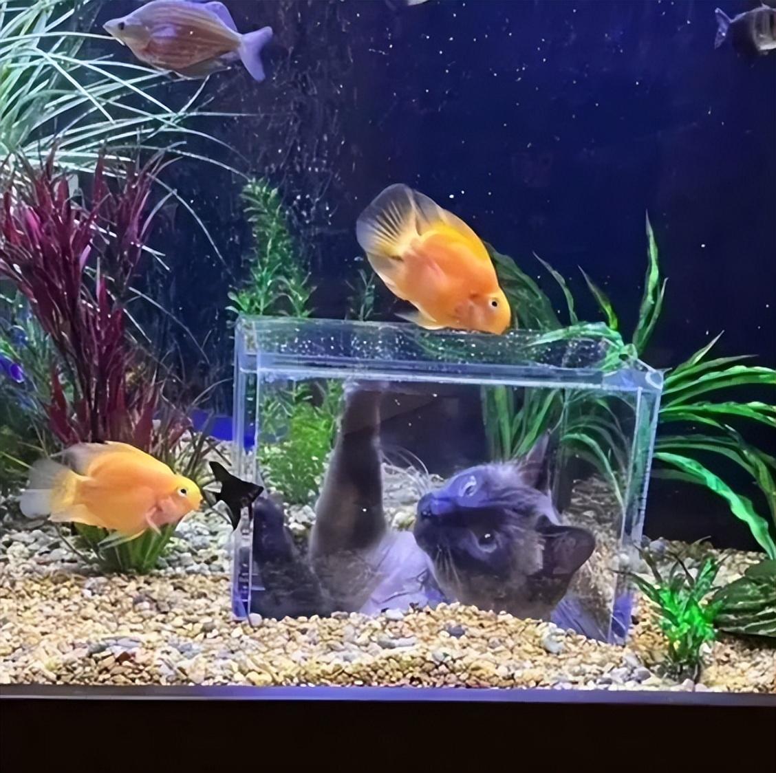 這哪裏是在魚缸裏面養貓咪呀,分明是爲貓咪打造的一套專屬“魚景房”好不好。