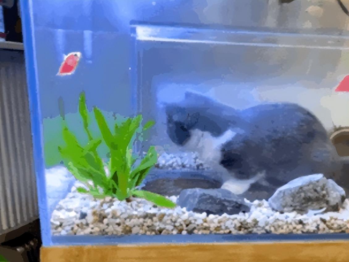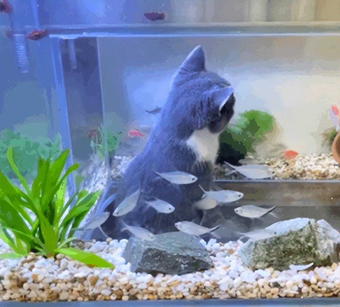 等等,在魚缸裏面?貓咪何時學會憋氣換氣了?難道貓咪已經成爲了小魚兒的同類?