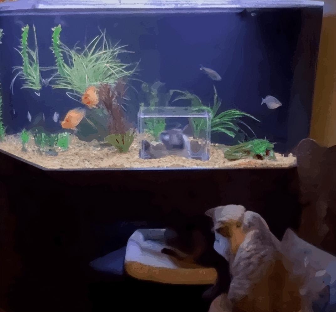 Jasper很幸福,原因是主人爲它打造了一個專屬於它的水族館,裏面養着各種它愛喫的小魚兒。可惜這些小魚兒只能觀賞,不能喫。