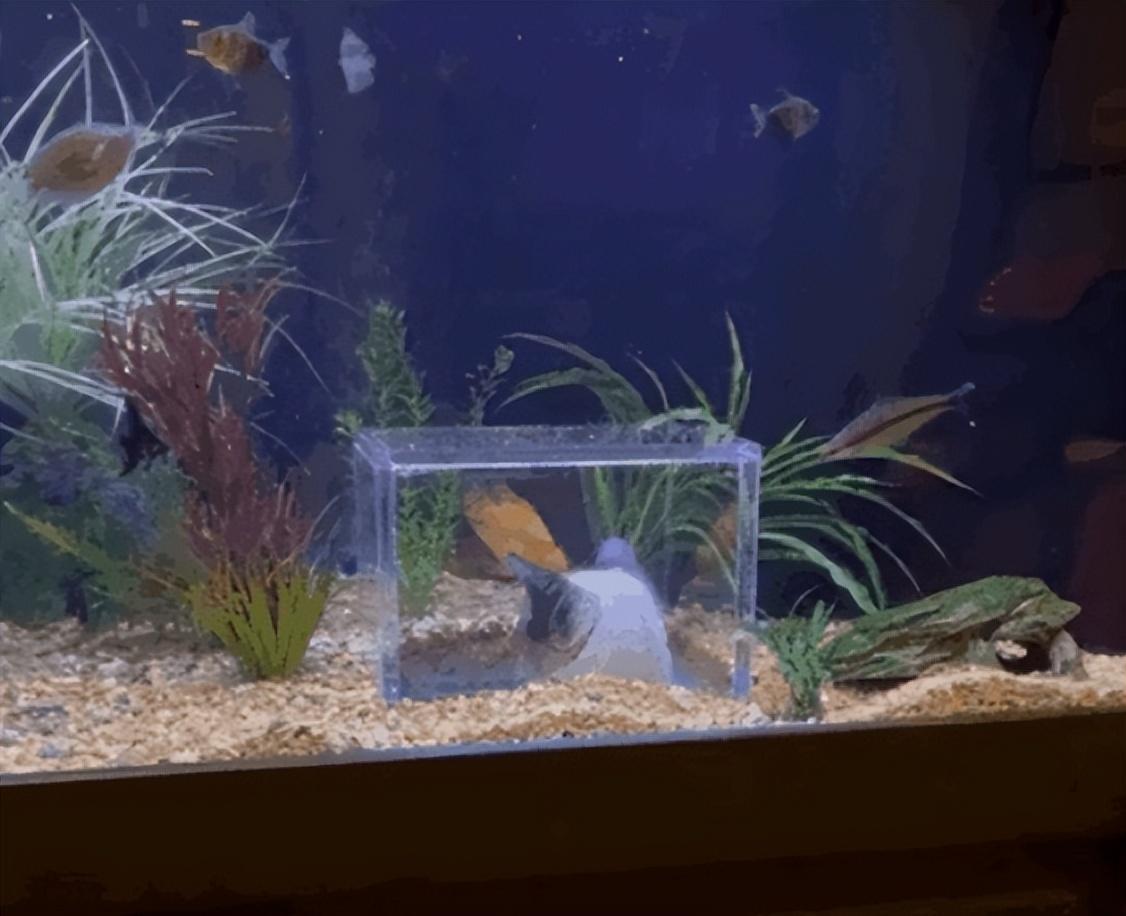 直到看到魚缸中間下面一個大洞,才發現被這家鏟屎官給欺騙了。