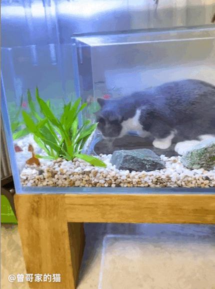 自從有了這個魚景房,鏟屎官表示養貓輕鬆多了,它每天喫飽喝足就火急火燎地跑到魚缸裏面跟魚兒玩耍,一點都不用她操心。