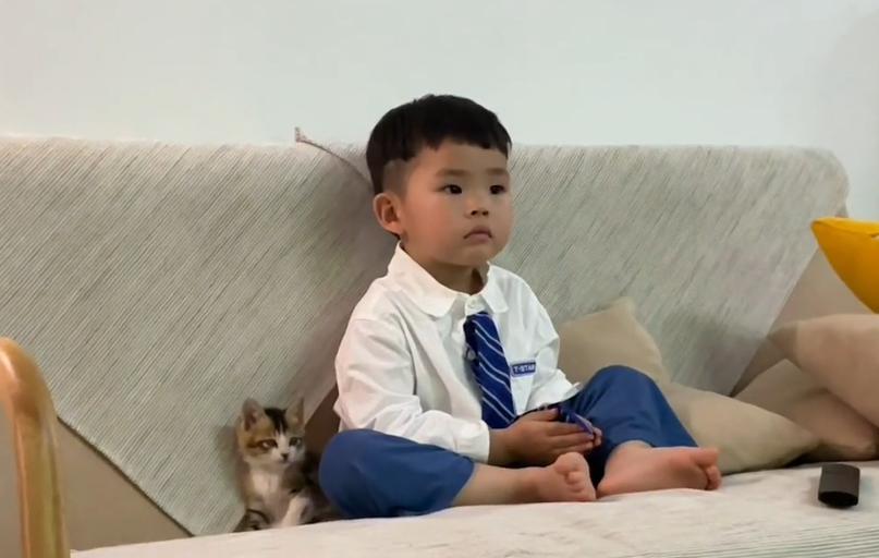 隨着時間的推移,小貓的身體逐漸恢復,它開始展現出活潑好動的一面。也不知道從啥時候開始,小貓老是跟着男孩身旁轉悠。