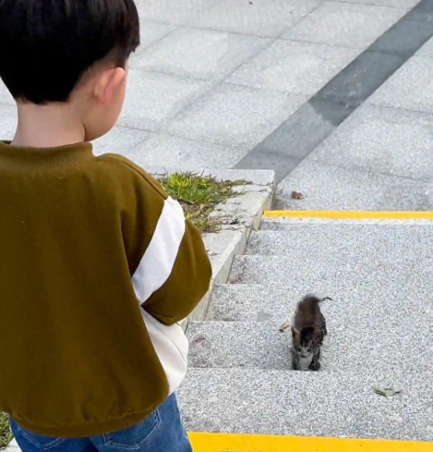 孩子看到小貓時,並沒有像其他孩子那樣被嚇得轉身就跑,而是站在原地,眼中充滿了同情與好奇。他想救這隻小貓,但又不知該如何是好。小姐姐看出了孩子的心思,便找來一個紙箱放在地上,輕聲對孩子說:“如果小貓進去了,咱們就養它好不好?”