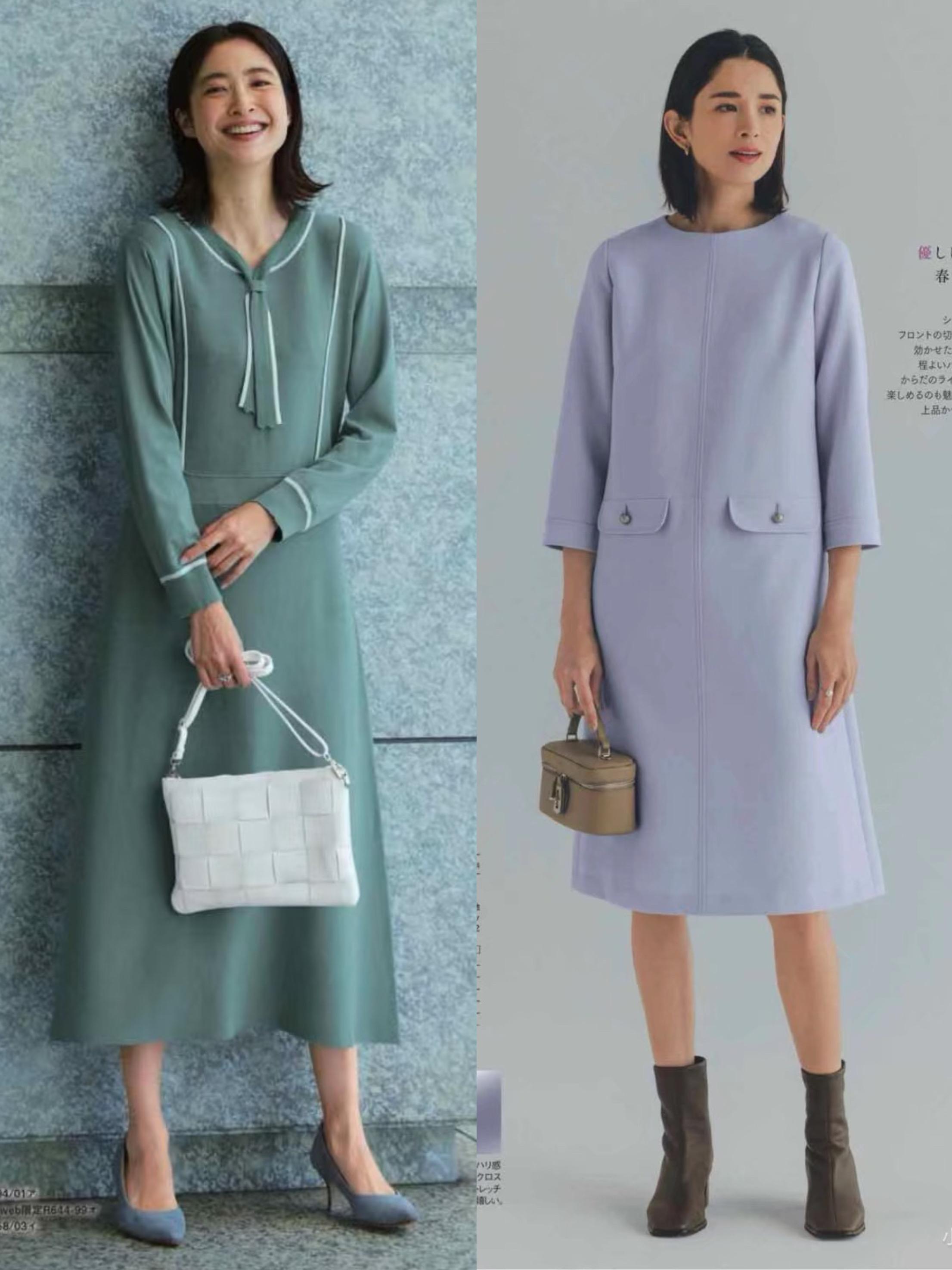 純色系的過膝連衣裙,我們可以選擇帶有精緻設計感的款式。比如這種小香風過膝裙、或者海軍風過膝裙,太優雅了。