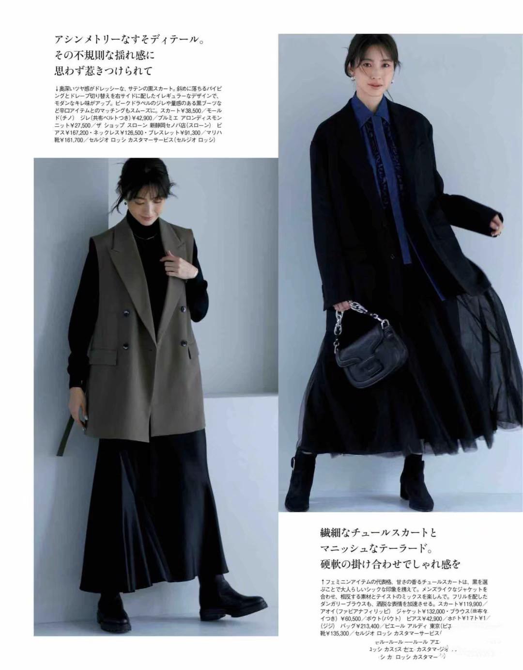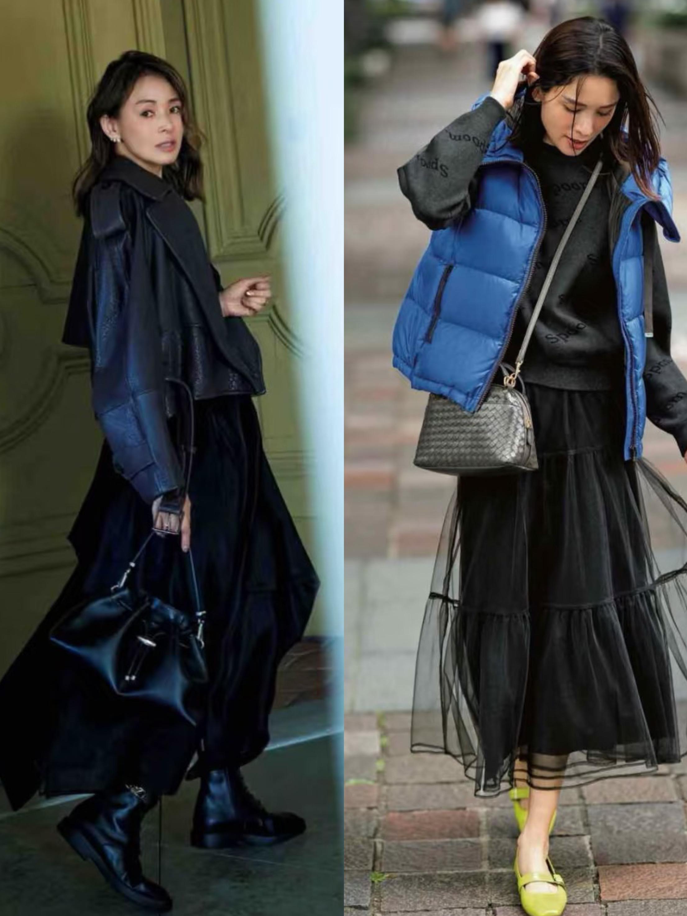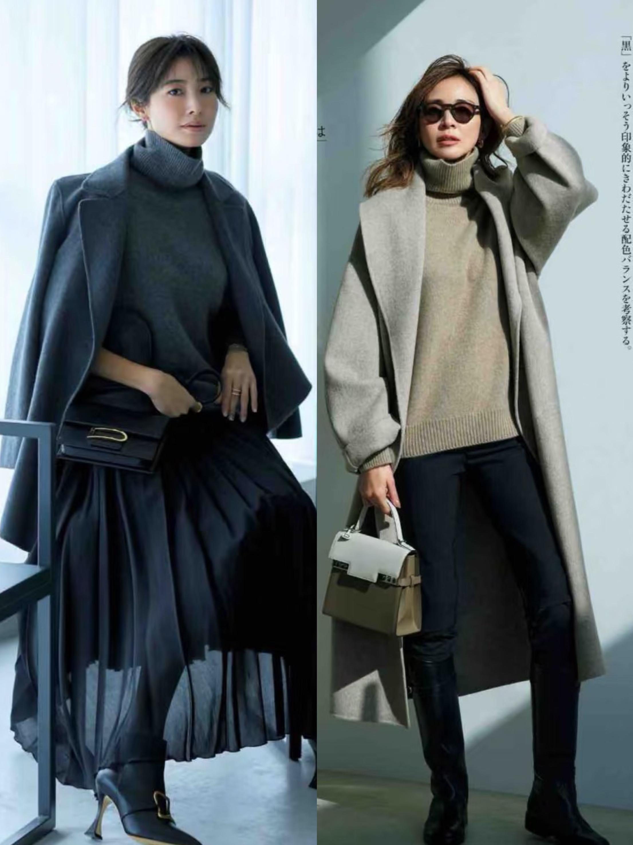 面料挺括的長款大衣,配上過膝的半身裙,優雅從容自帶華麗之美。這種過膝的半身裙,可以選擇大量感的裙襬,更優雅華麗。