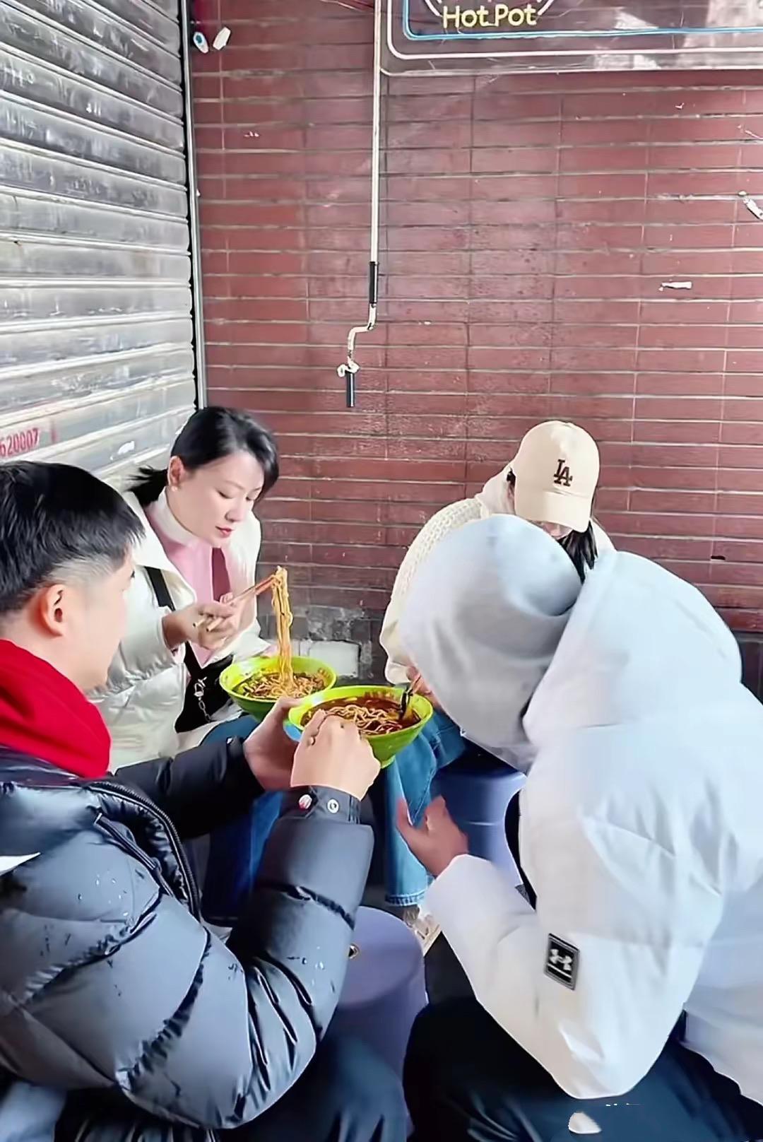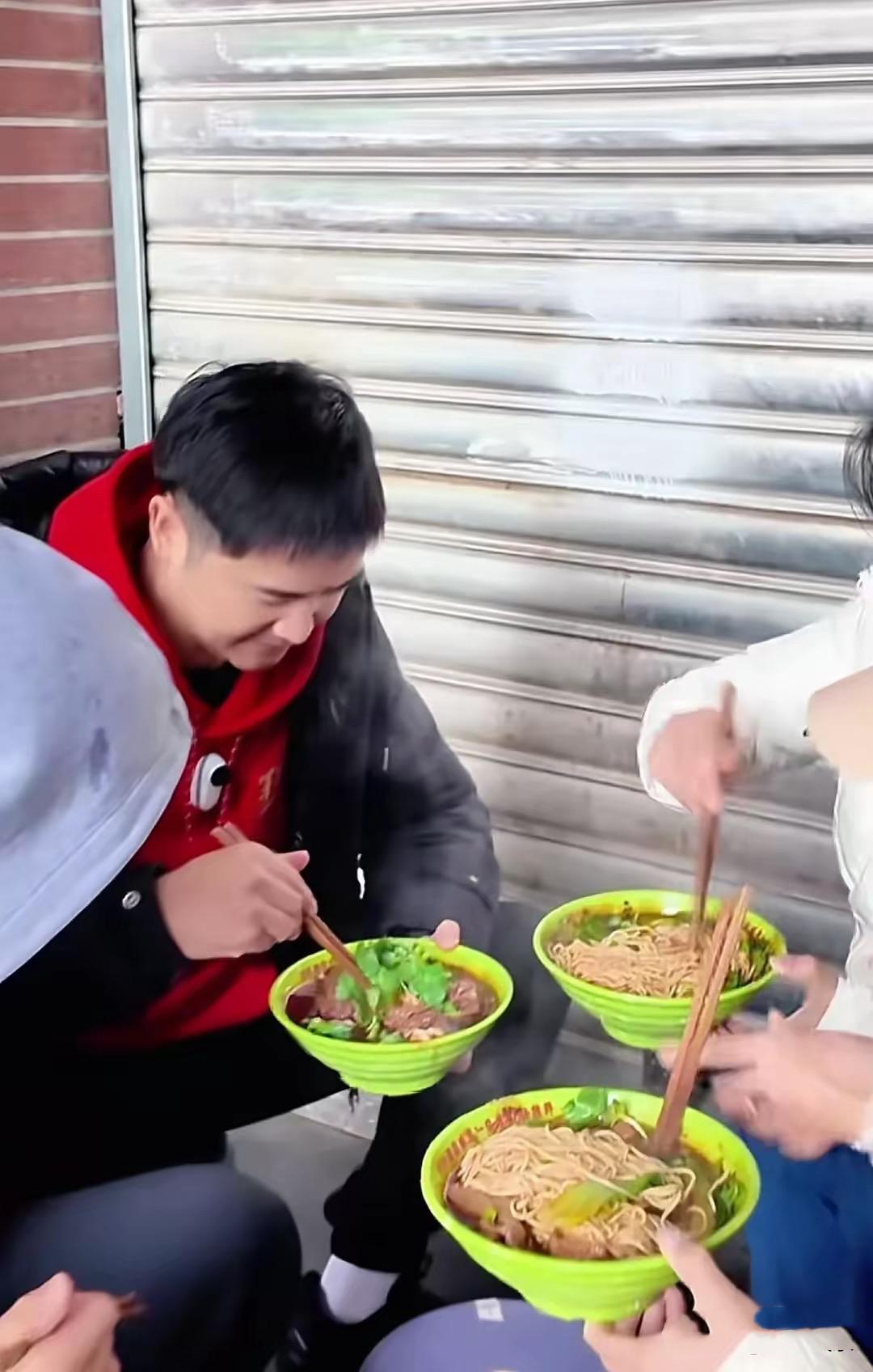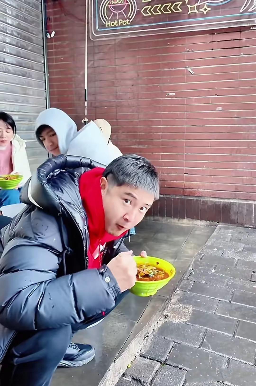 田亮就這樣蹲在路邊喫小面,一點架子都沒有。這可是曾經的跳水冠軍呀,後來轉型進入演藝圈、也是非常成功的。