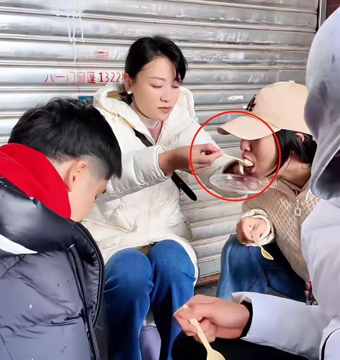 田亮一家遊重慶,他們蹲在街邊喫8元小面,葉一茜帶貼心喂森碟