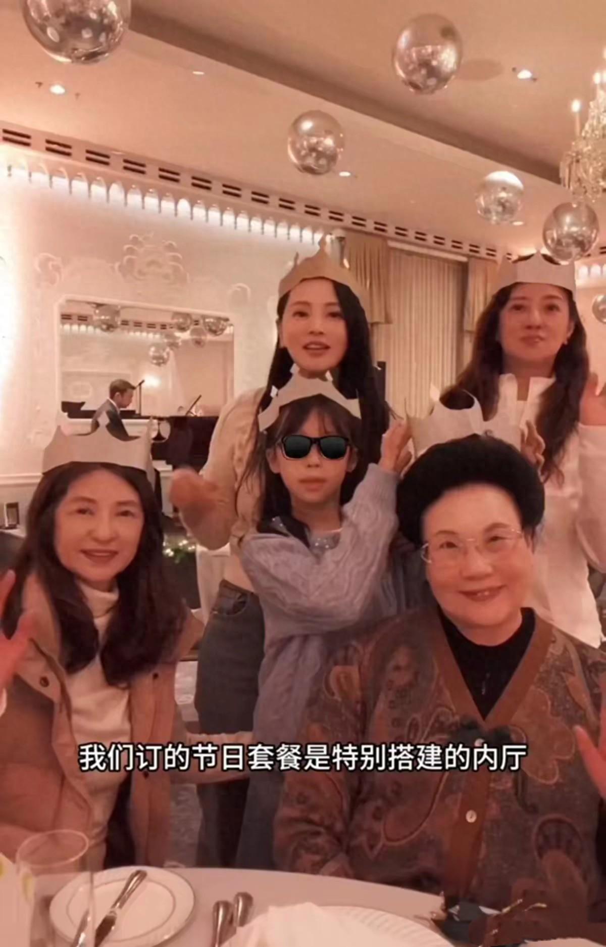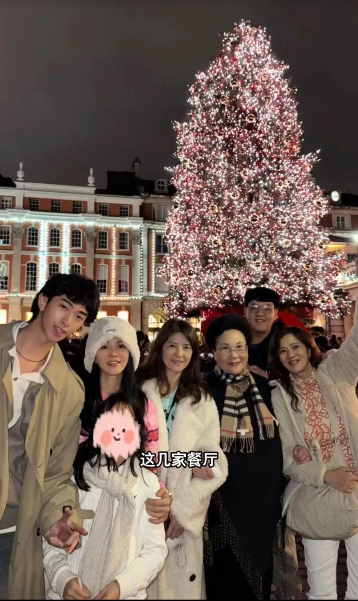 婆婆穿黑色大衣,站在C位,雙手挽着伊能靜的姐姐。這畫面真的太有愛了,伊能靜戴着毛茸茸的白色帽子、顯得特別年輕。