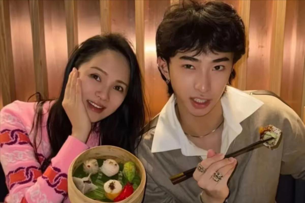 鏡頭裏伊能靜和恩利親密的合影,恩利越來越俊朗清秀了,是個乾淨又時髦的男孩子。他穿了一件寬鬆的卡其色風衣,內搭一件白色翻領襯衫,洋氣又顯精神。