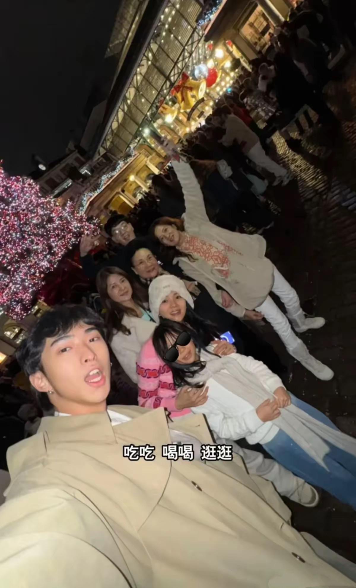 伊能靜一行人浪漫的夜景裏拍照,他的兒子好帥氣。恩利23歲了,他的長相很俊俏、五官比較精緻、是那種很耐看的男生。