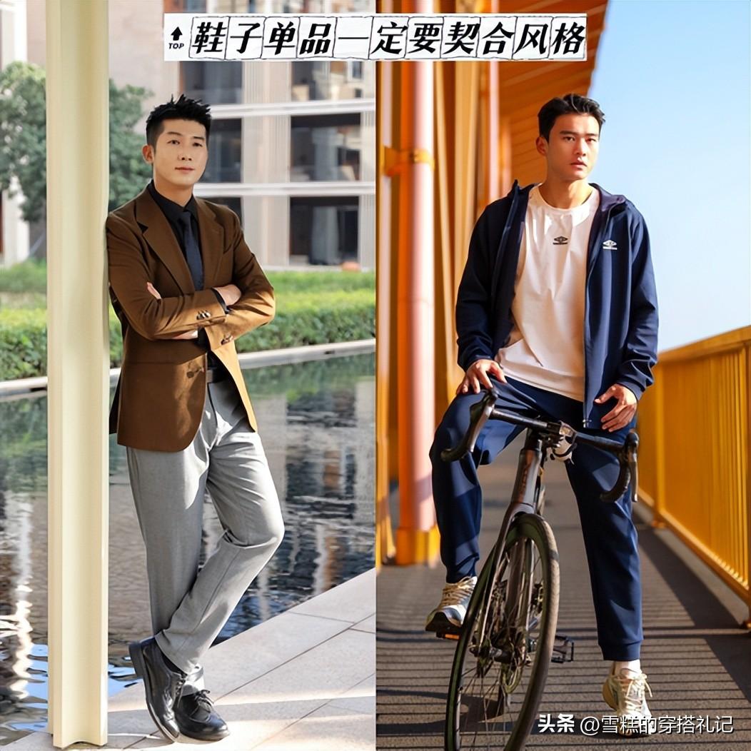 對於男性而言在穿搭任何一個氣質和風格系列單品的時候都建議各位可以用對鞋型,例如在職場的時候搭配的,如果是西裝組合,那麼就一定要運用皮鞋,如果在日常休閒當中,那麼就可以選擇一些老爹鞋又或者是板鞋之類的單品。