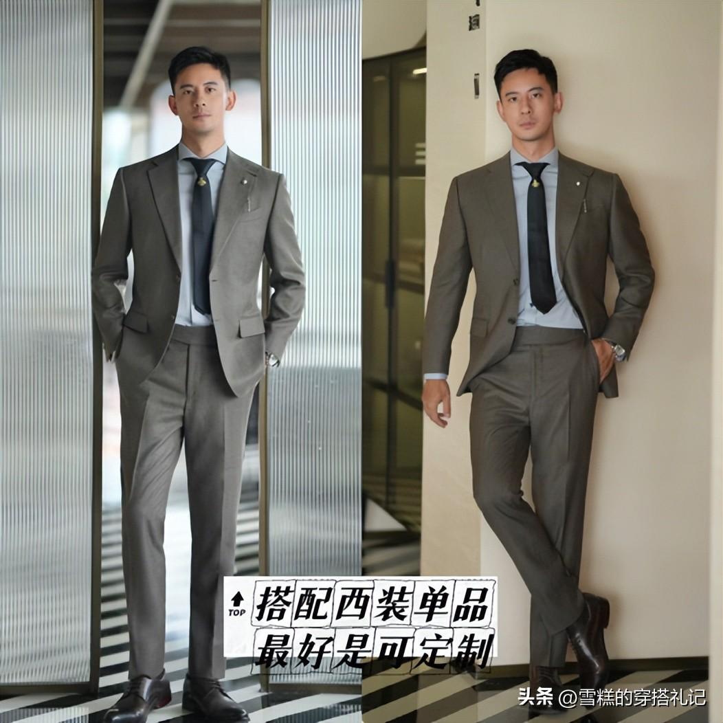 而在搭配西裝單品的時候,最終所呈現的效果還是要給人一種很利落高級的感覺,所以建議各位男性在選擇西裝單品的時候,最好能夠完全契合於自己的身材狀態,如果有條件的話,其實可以去一些專賣店專門定製。西裝單品的定製款和隨意購買的款式穿搭出來的氣質狀態是完全不同的。