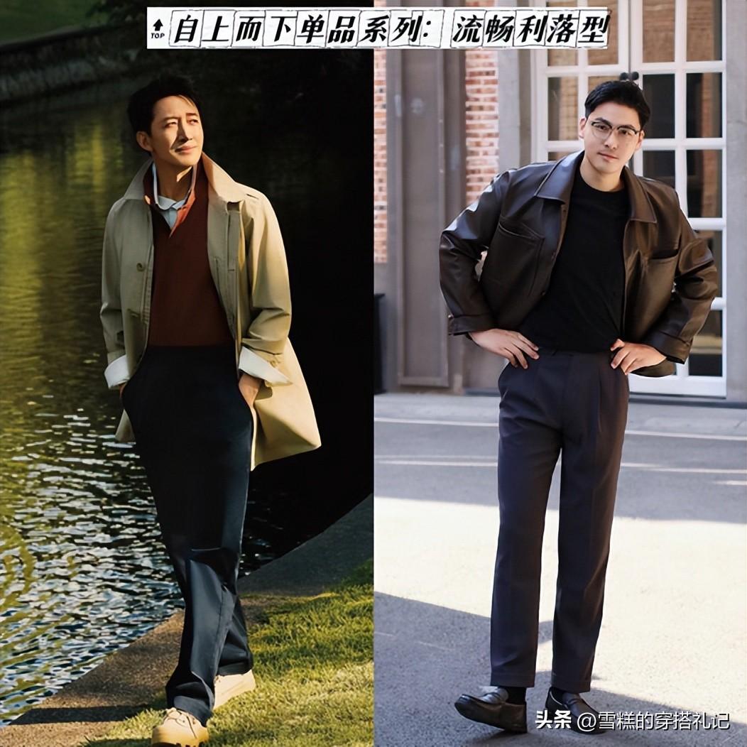 而且不管選擇什麼樣的褲裝單品進行搭配,都建議大家是一定要注重其本身的線條走向屬於流暢又修直的類型的,尤其是西裝褲以及牛仔褲這一類的搭配。推薦各位男性在色系當中也可以優選比較暗的色系,又或者是飽和度較低的類型!