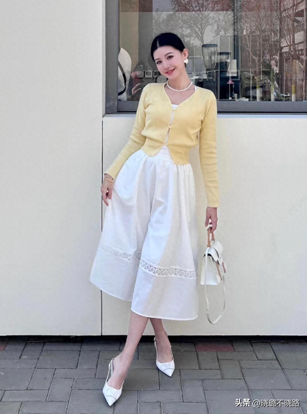 玩轉春日多巴胺,少不了奶油黃和白色的配色公式,短衫和長裙的搭配,除了款式要選對,在配色上也十分講究,都說“配色是穿搭的靈魂”,只要顏色選的養眼,走在街上就是焦點。