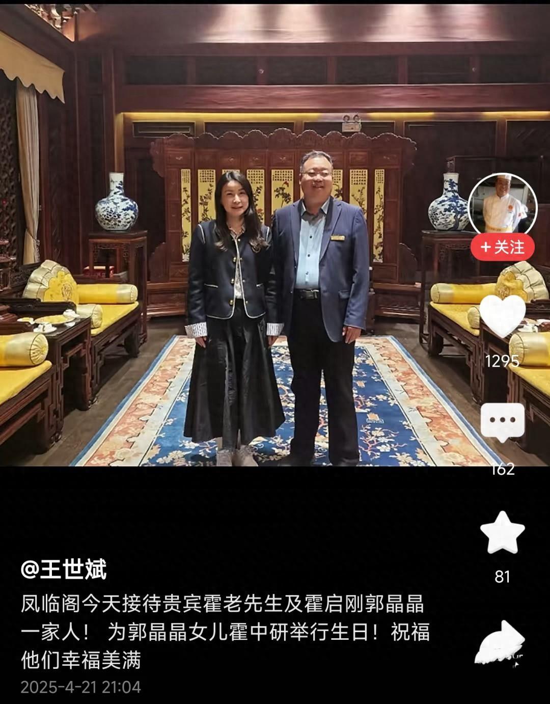 郭晶晶在鳳臨閣給長女慶生,她素顏端莊太有主母範,霍震霆也陪同
