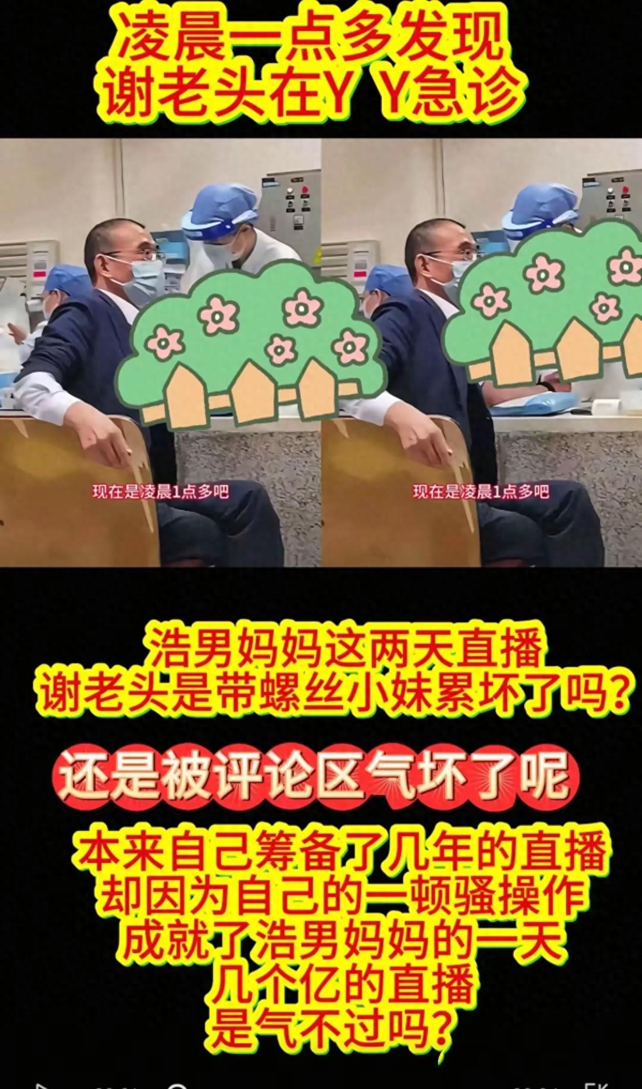 而老謝又在這個節骨眼上看急診去了,不知道他是被網友氣的上火了,還是想要加戲推自己火一把,還是想兒子來看自己了。